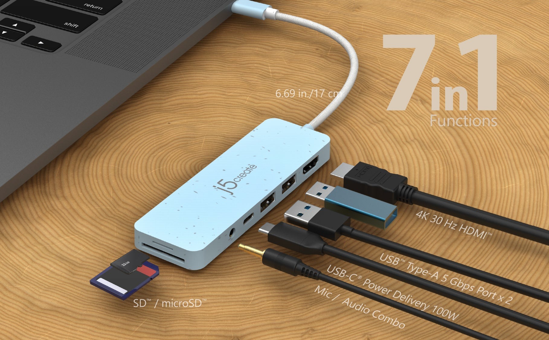 • 1 - Екологічний багатопортовий концентратор USB-C® з функцією Power Delivery JCD373E