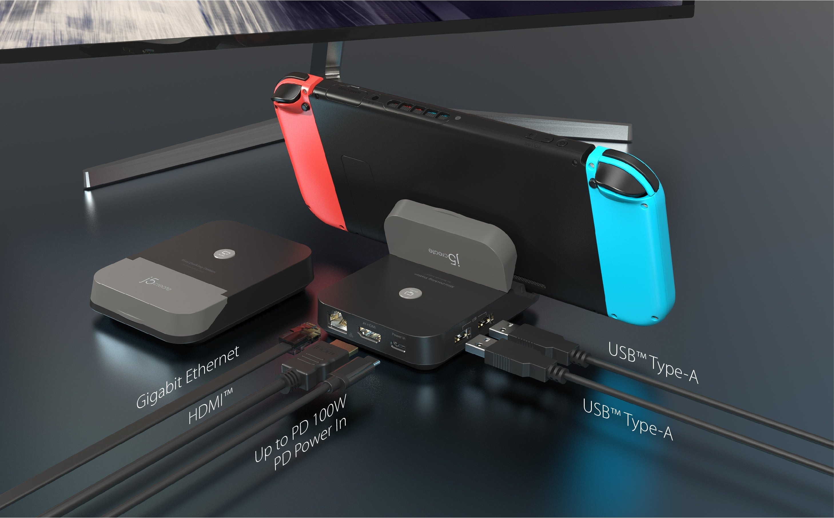 Додайте додаткові функції до вашої Nintendo Switch™ за допомогою міні-док-станції JCD620. Ця міні-док-станція дозволяє виводити зображення з консолі на HDTV. Підключіть USB™ Type-A до аксесуарів, таких як ігровий контролер або клавіатура. Док-станція також оснащена високошвидкісним портом Gigabit Ethernet для стабільності мережі.