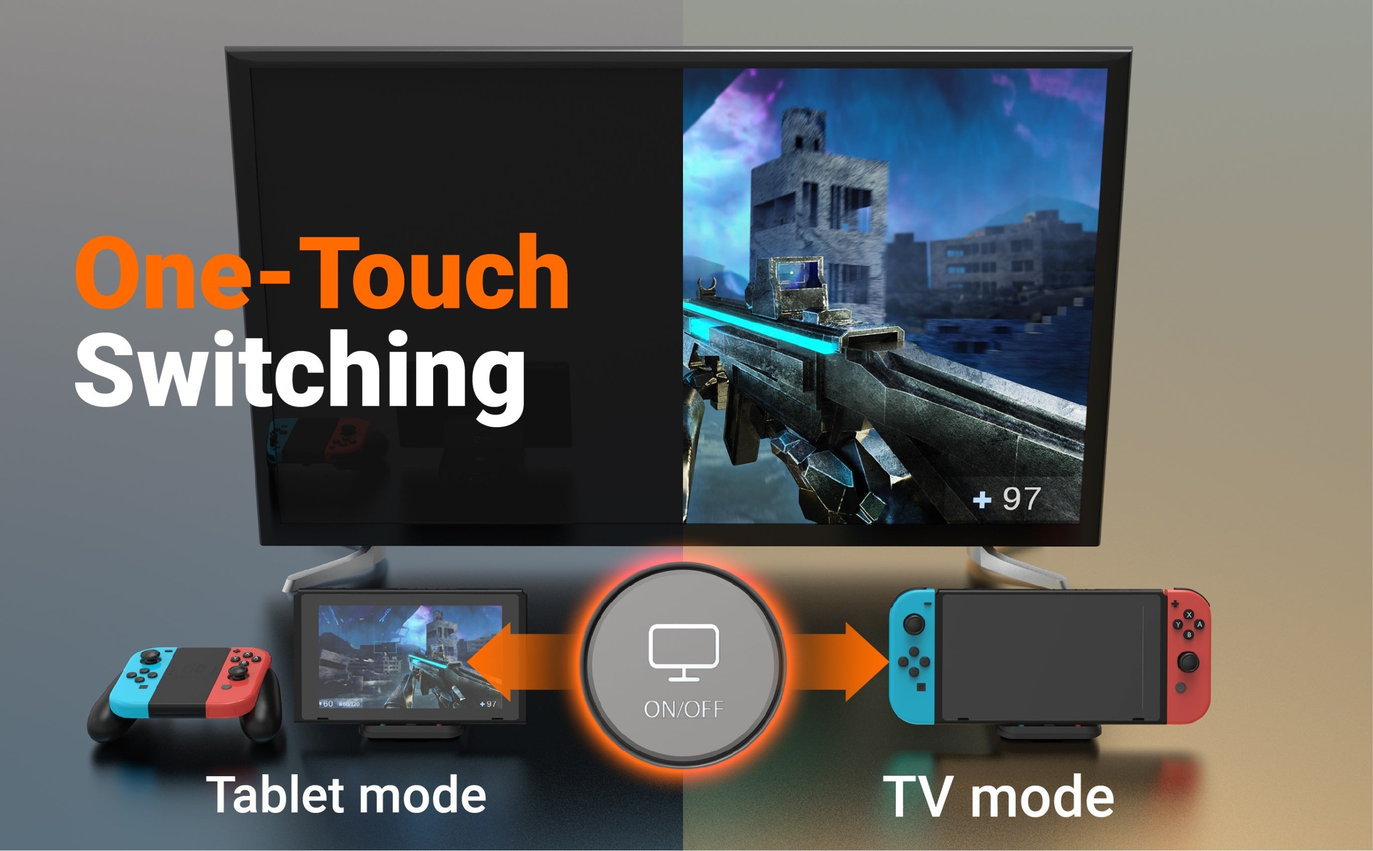 Легко активуйте режим планшета або режим виведення на телевізор, натиснувши кнопку перемикання дисплея у верхній частині док-станції.