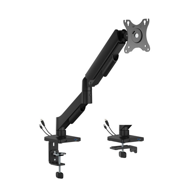 • Настільне кріплення для монітора з одним кронштейном і вбудованими USB-портами