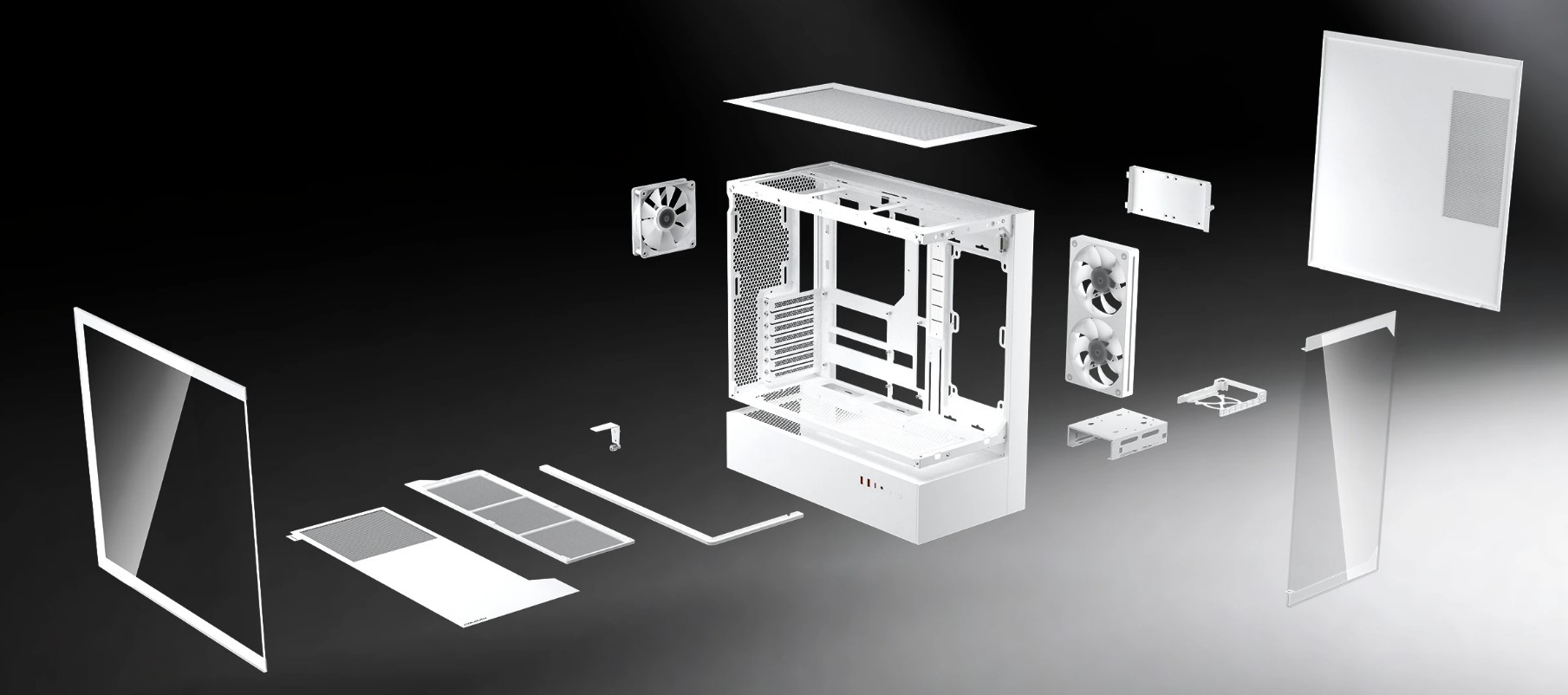 Сталева рама товщиною 1.5 мм підсилює шасі, зберігаючи структурну цілісність навіть при використанні підвісної центральної вентиляції. В результаті виходить смілива, відкрита архітектура, яка залишається жорсткою, надійною і готовою до високопродуктивних збірок.