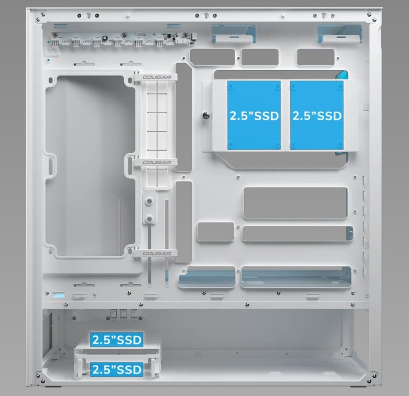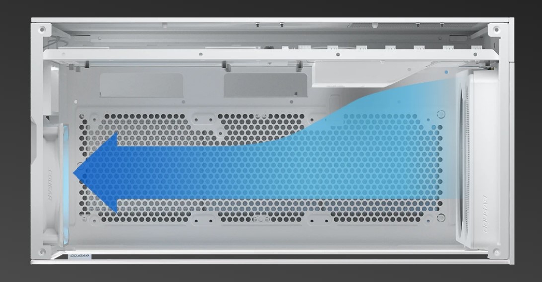 Сумісний з материнськими платами зі зворотним роз'ємом і підтримує відеокарти довжиною до 400 мм, корпус CFV235 Mesh розроблений для ігрових систем майбутнього. Кришка виконує три функції: направляє повітряний потік, полегшує прокладку кабелів і служить тримачем відеокарти. Її розташування можна оптимально підібрати відповідно до параметрів материнської плати. Це дозволяє максимально ефективно використовувати доступний простір, не тільки зменшуючи кількість кабелів, але і підвищуючи стабільність роботи.