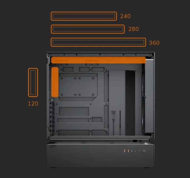 Стальная рама толщиной 1.5 мм усиливает шасси, сохраняя структурную целостность даже при использовании подвесной центральной вентиляции. В результате получается смелая, открытая архитектура, которая остаётся жёсткой, надёжной и готовой к высокопроизводительным сборкам.