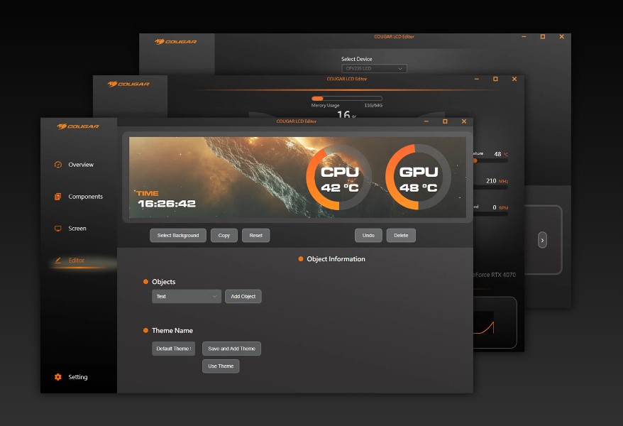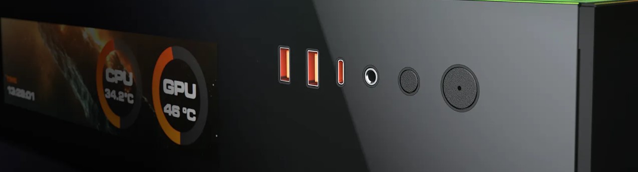 Монітор CFV235 Vision оснащений 9.16-дюймовим LCD-дисплеєм IPS TFT з роздільною здатністю 1920 x 462 і частотою оновлення 60 Гц для моніторингу системи в режимі реального часу. Відстежуйте критично важливі дані, від температури до швидкості обертання вентиляторів, і персоналізуйте дисплей, використовуючи контент у форматах JPG, PNG, GIF або MP4. Управління здійснюється за допомогою програмного забезпечення, яке виконує функцію оперативного центру управління.