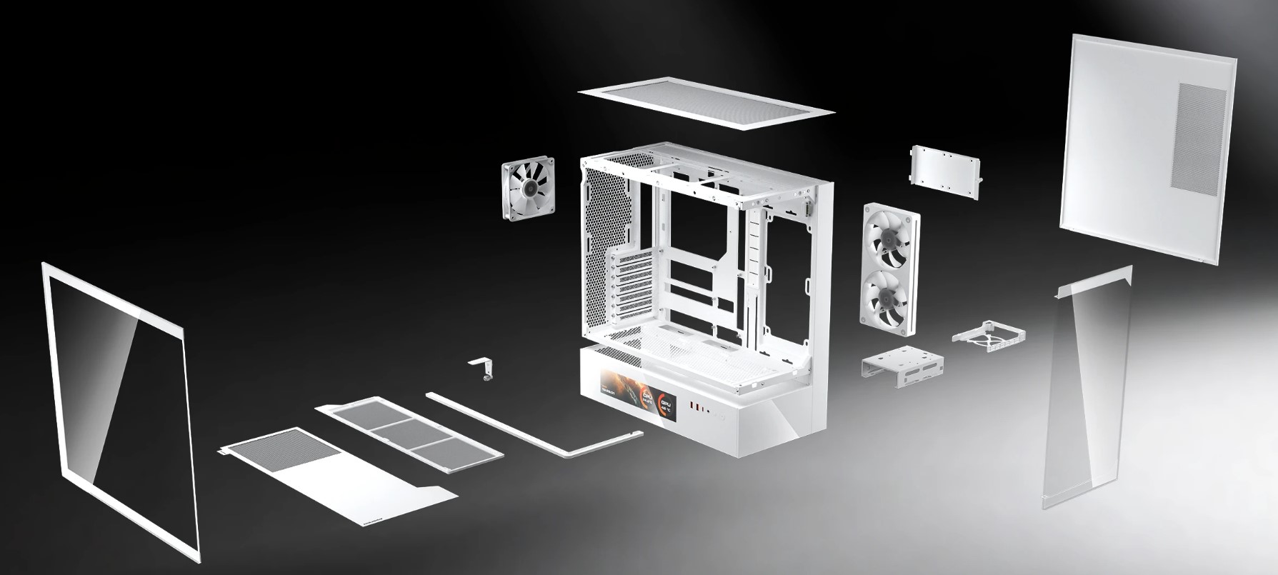 Стальная рама толщиной 1.5 мм усиливает шасси, сохраняя структурную целостность даже при использовании подвесной центральной вентиляции. В результате получается смелая, открытая архитектура, которая остаётся жёсткой, надёжной и готовой к высокопроизводительным сборкам.