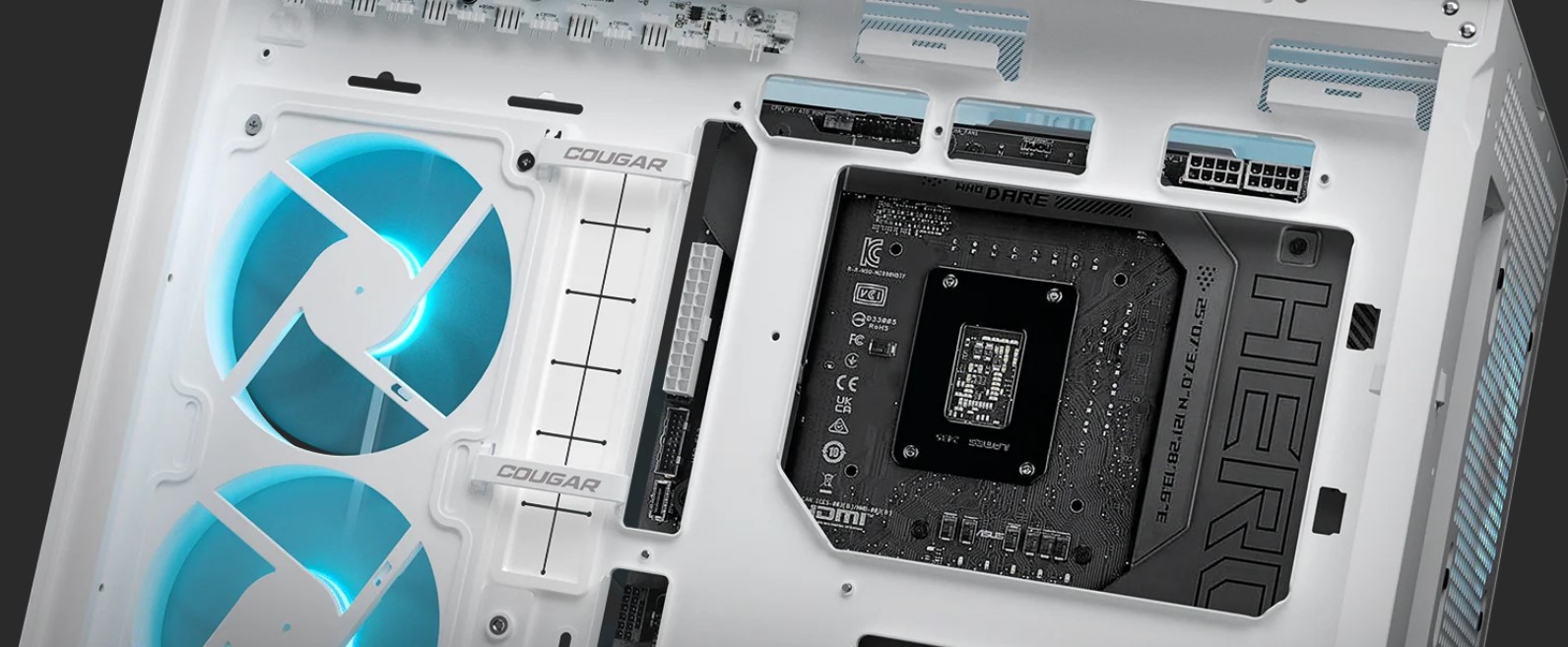 Однокорпусні вентилятори COUGAR Unity ARGB 240 з ШІМ-керуванням і зворотним напрямком лопатей попередньо встановлені на материнській платі, забезпечуючи точне керування швидкістю обертання, виняткове охолодження, практично безшумну роботу і приголомшливе RGB-підсвічування відразу після виймання з коробки.