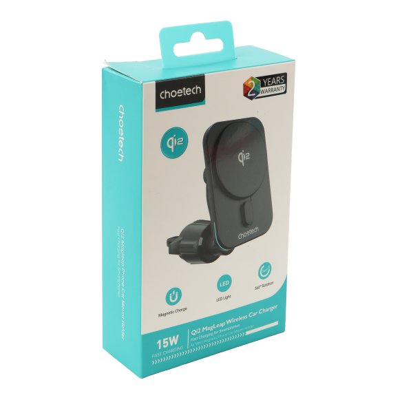 Автомобільний зарядний пристрій, QI 15 Вт (сумісний з MagSafe), чорний