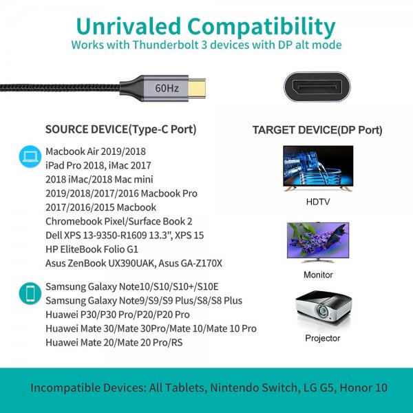 Адаптер-перехідник USB-C на DP, 4К 60 Гц