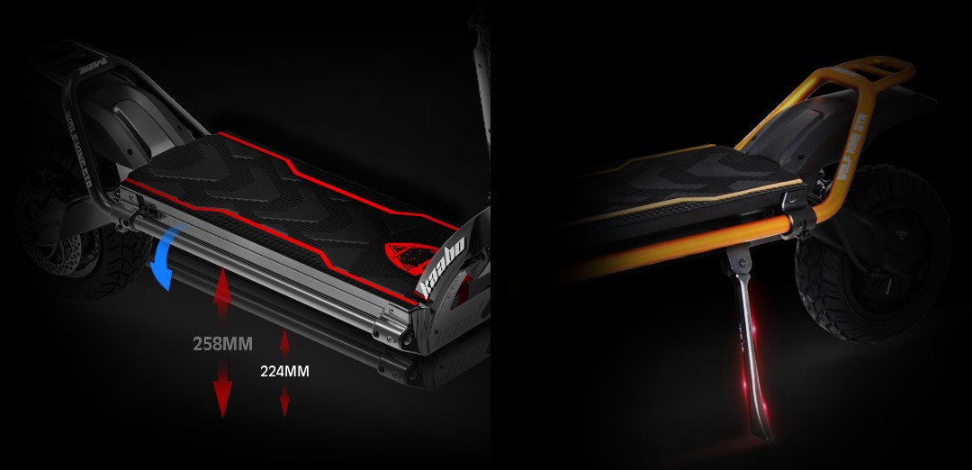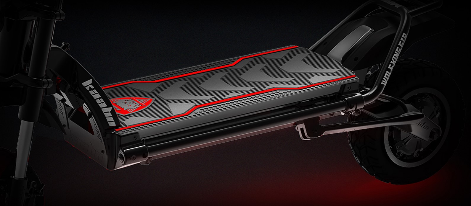 Самокат Wolf King GTR Max отличается оптимизированной увеличенной платформой, обеспечивающей больше пространства для повышения комфорта и устойчивости, гарантируя более плавную и безопасную езду.