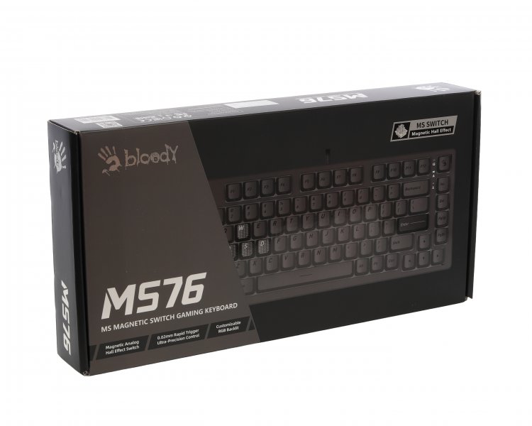 Магнітні перемикачі Bloody MS з функцією гарячої заміни. Точно сконструйовані магнітні перемикачі забезпечують плавне натискання клавіш з тонко відкаліброваним опором. Кожна клавіша спрацьовує з точністю 25 ±5 cN, забезпечуючи швидкий відскок і повний контроль. Розроблені з ресурсом 100 мільйонів натискань