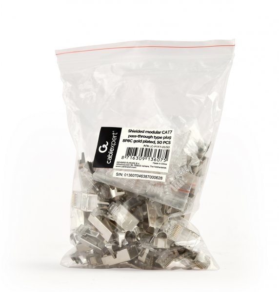Конектор 8P8C, CAT-7, FTP, з наскрізними отворами, позолочені контакти (10 шт.)